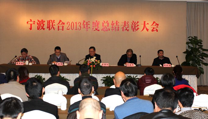 2014年1月27日上午,寧波聯(lián)合集團股份有限公司在戚家山賓館舉行2013年度總結(jié)表彰大會。公司總部全體員工、各分公司、子公司和B類企業(yè)領(lǐng)導(dǎo)班子成員以及公司2013年度先進單位代表和先進個人代表參與了總結(jié)表彰大會。公司領(lǐng)導(dǎo)王維和、陳建華、戴曉峻、周兆惠、董慶慈在主席臺就座,公司黨委副書記陳建華主持了本次會議。