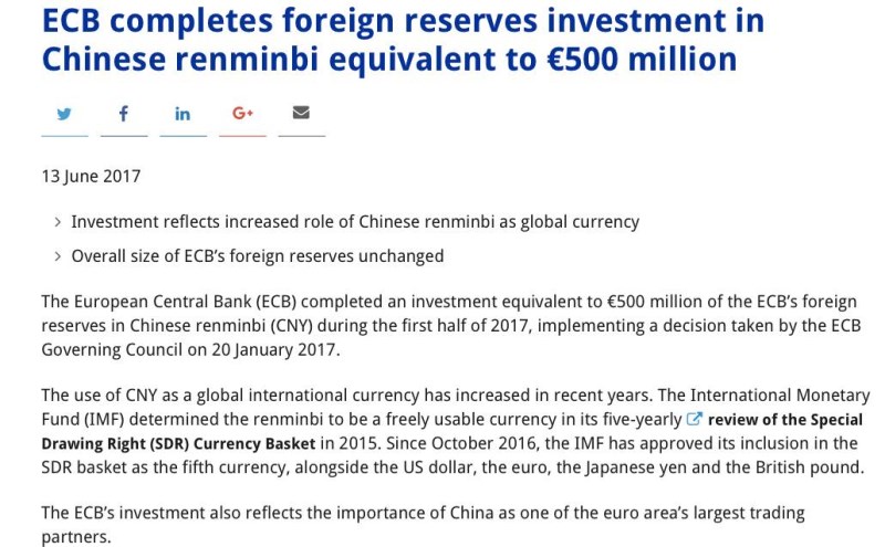 有史以來第一次,歐洲央行開始持有人民幣外匯儲備了!
