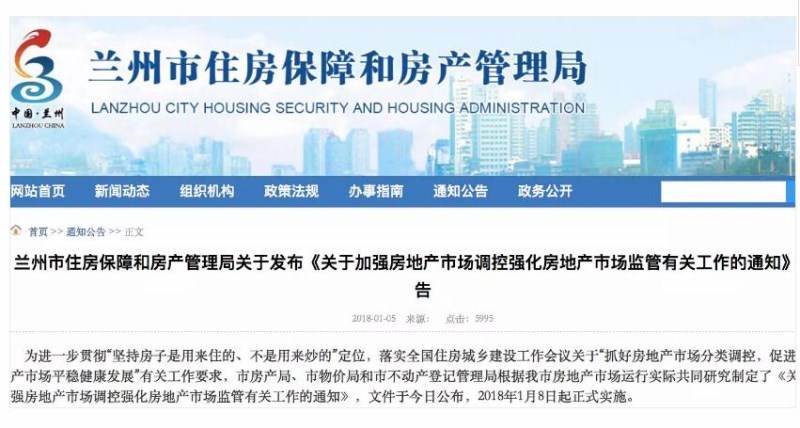 1月5日,蘭州市住房保障和房產(chǎn)管理局發(fā)布通知,1月8日起,對現(xiàn)行房地產(chǎn)市場調(diào)控政策將進行調(diào)整,該調(diào)整包括兩個部分,取消限購和限售措施。